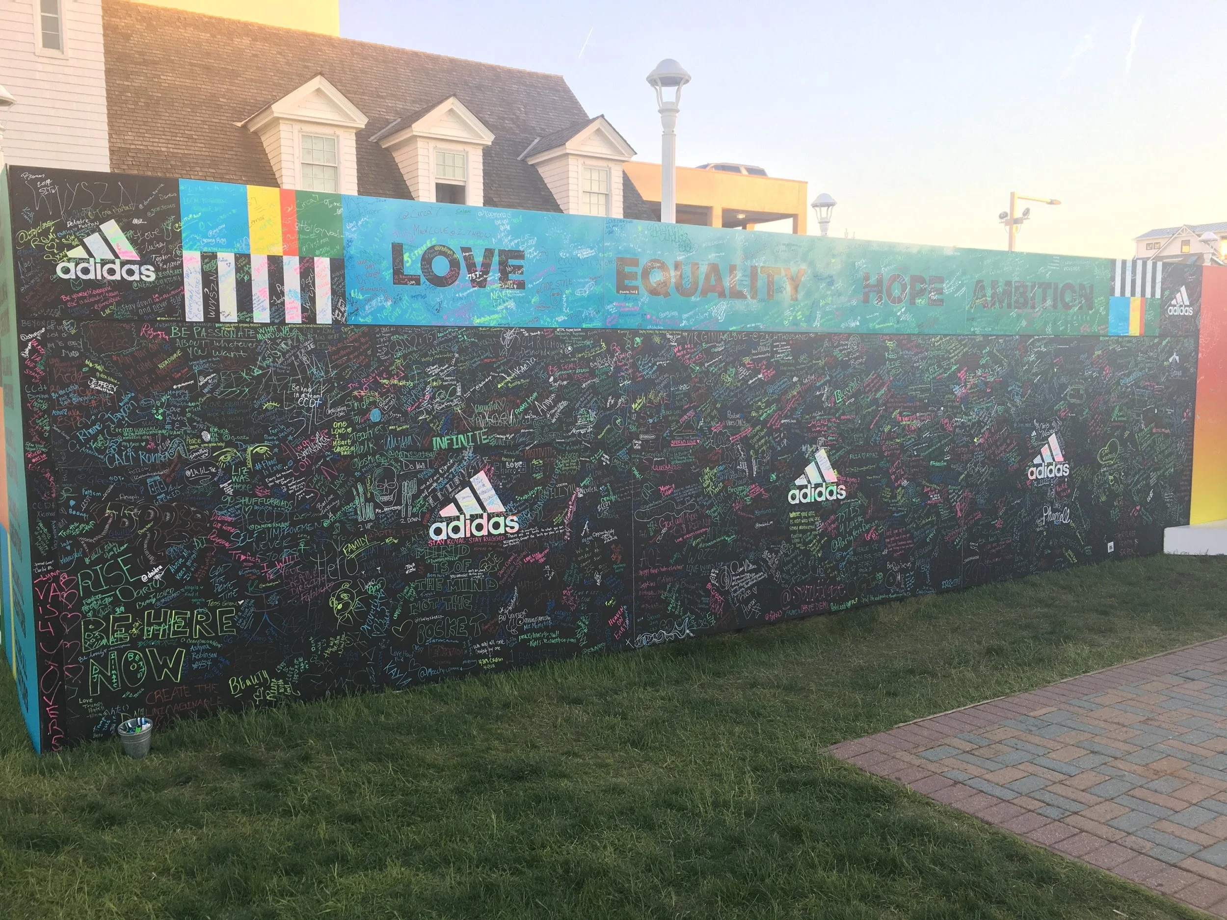 In celebration of adidas relationship with Pharrell Williams, adidas sponsored a large scale activation at the 2019 Something In The Water Festival in Virginia Beach, VA with over 14k attendees over three days. The activation space included a full size custom built basketball court on the beach with free access/programming for the community & festival attendees. Additionally an adjacent footprint housed a dance competition with 10 local dance groups hosted by JaQuel Knight and Mette Towley with the winning group getting the chance to dance on the main stage at the festival. Attendees had the opportunity to receive a custom airbrushed tote by local artists, customize their own free pair of adidas slides and engage with multiple photo moments. In an effort to give back to the local community with even greater impact, adidas hosted local HBCU students for a mentorship session that Pharrell attended.